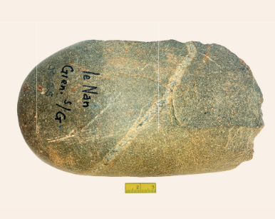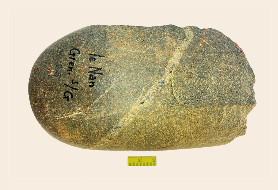 De artefacten door ons gevonden bij Le Nan (Fig.1, kaartje geografie) zijn vervaardigd uit rolstenen voornamelijk van een fijnkorrelige grijze kwartsiet die vaak doorsneden is met witte kwartsaders. In mindere mate is er sprake van (melk-)kwarts en een paarse fijnkorrelige kwartsiet. De rolstenen zijn van een flink formaat, van 4 tot 12 centimeter, en zijn waarschijnlijk primair afkomstig uit oude, toendertijd dagzomende rivierbeddingen. Daar werden zij door mensachtigen, wellicht Homo heidelbergensis (Schoetensack, 1908), verzameld en meegenomen naar hun nederzetting om daar bewerkt te worden tot werktuigen.