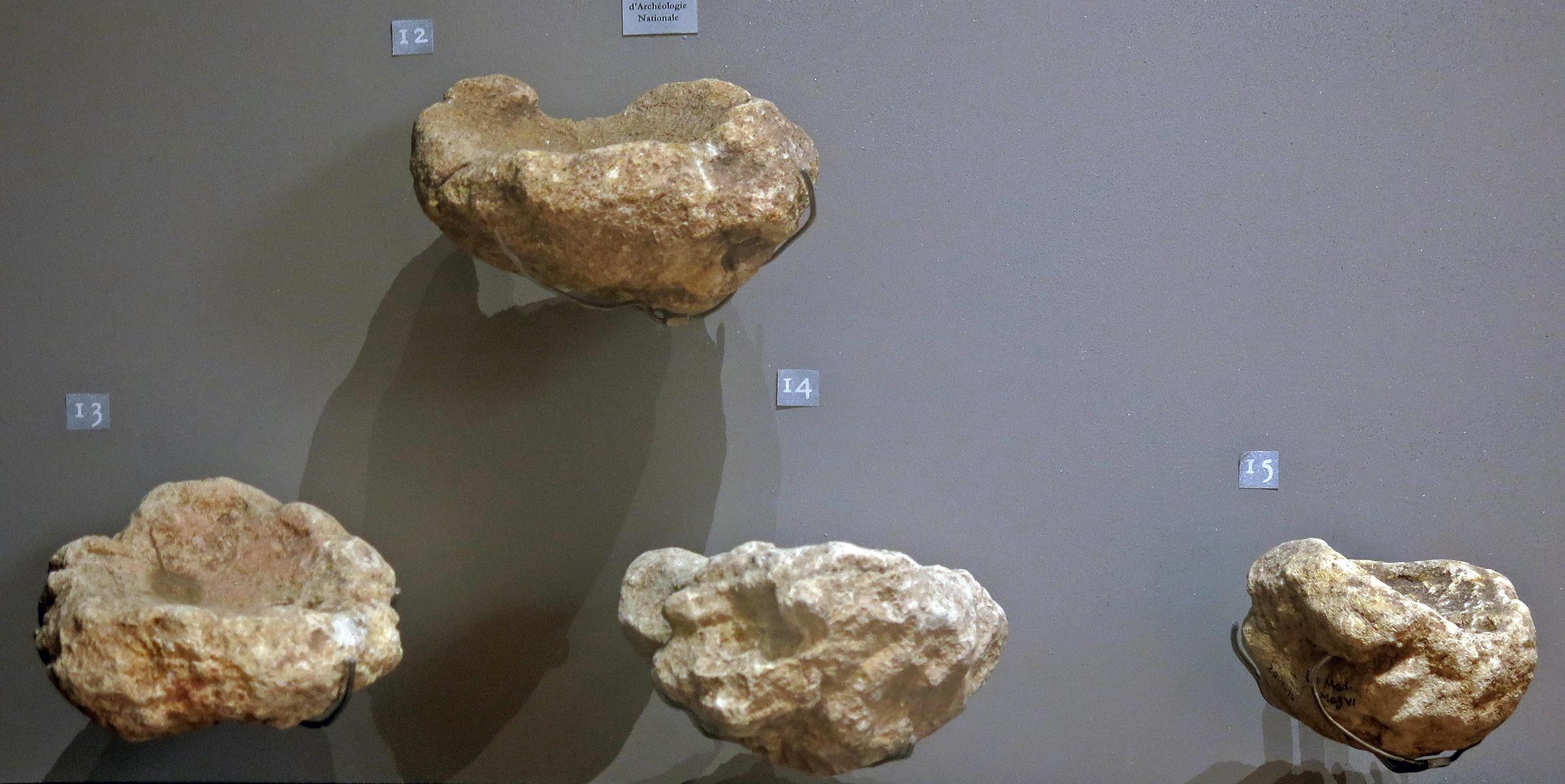 Foto: Kalksteen vetlampen tentoongesteld in Le Musée National de Préhistoire, Les Eyzies-de-Tayac.