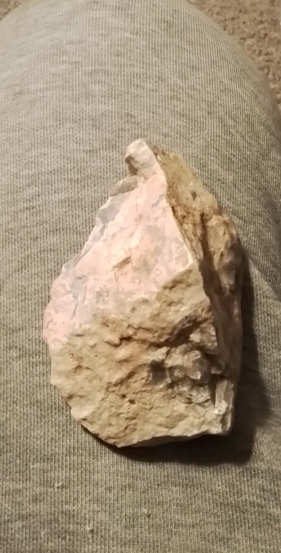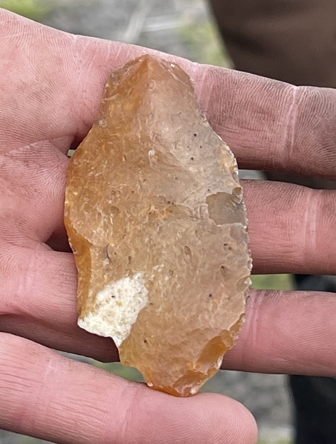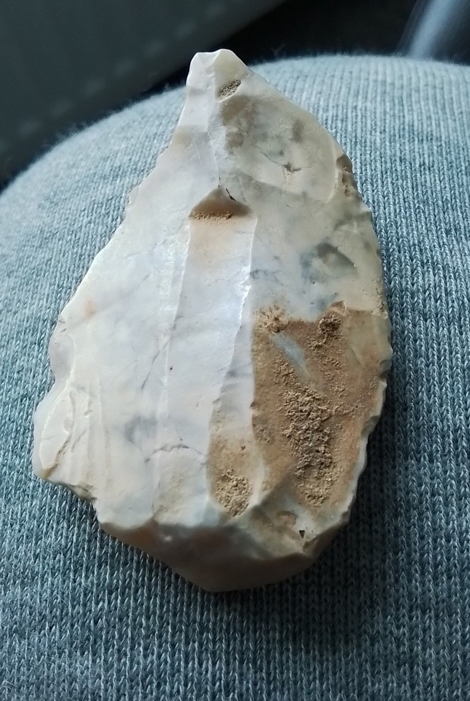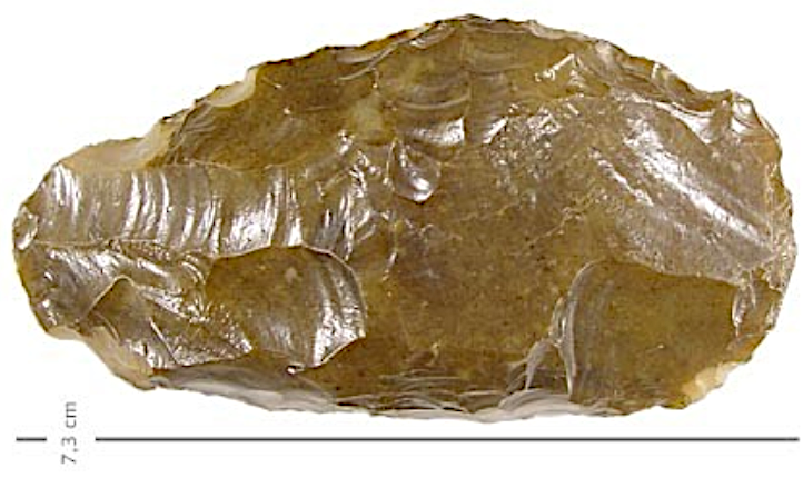 En deze groep maakte haar artefacten ook groter. Dit is m.i. schaaf op vuistbijl. Ik weet …het voldoet niet aan maakcriteria, ook onder keileem , vaak met dat knikje bovenop naar buiten..het voldoet nergens aan, maar toch 9cm bij 6 cm, en mocht het Mix zijn van Heidelbergensis mens en neanderthaler of volbloed Heidelbergensis, of mix neanderthaler en moderne mens, dan viel het mij in 2008 reeds op, maar ik claim niks hoor, maar mocht later toch ‘ het licht ‘doorbreken qua bewerkingverschillen, iets meer out of box, dan was ik reeds een vinder..er zullen vast meer mensen zijn die zulke dingen hebben, maar er liever niets van zeggen of het niet durven tonen..natuurlijk mag iedereen er om lachen.. maar ik zie er genoeg artefact in..slordig? Dat ligt in of aan de ogen van de bezitter, hier kon het klusje mee gedaan worden..